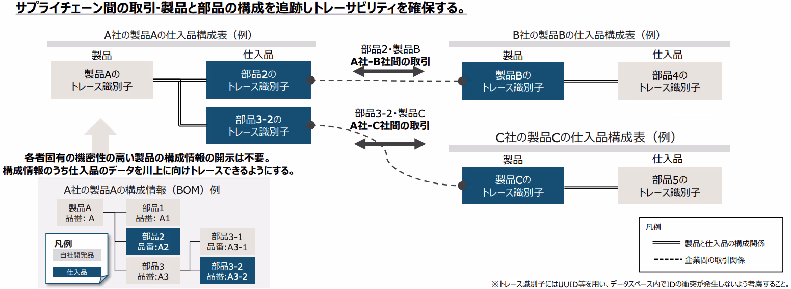 製品のトレーサビリティを確保するためには、サプライチェーン上の取引関係と製品構成を正確に記録・追跡できなければなりません。
